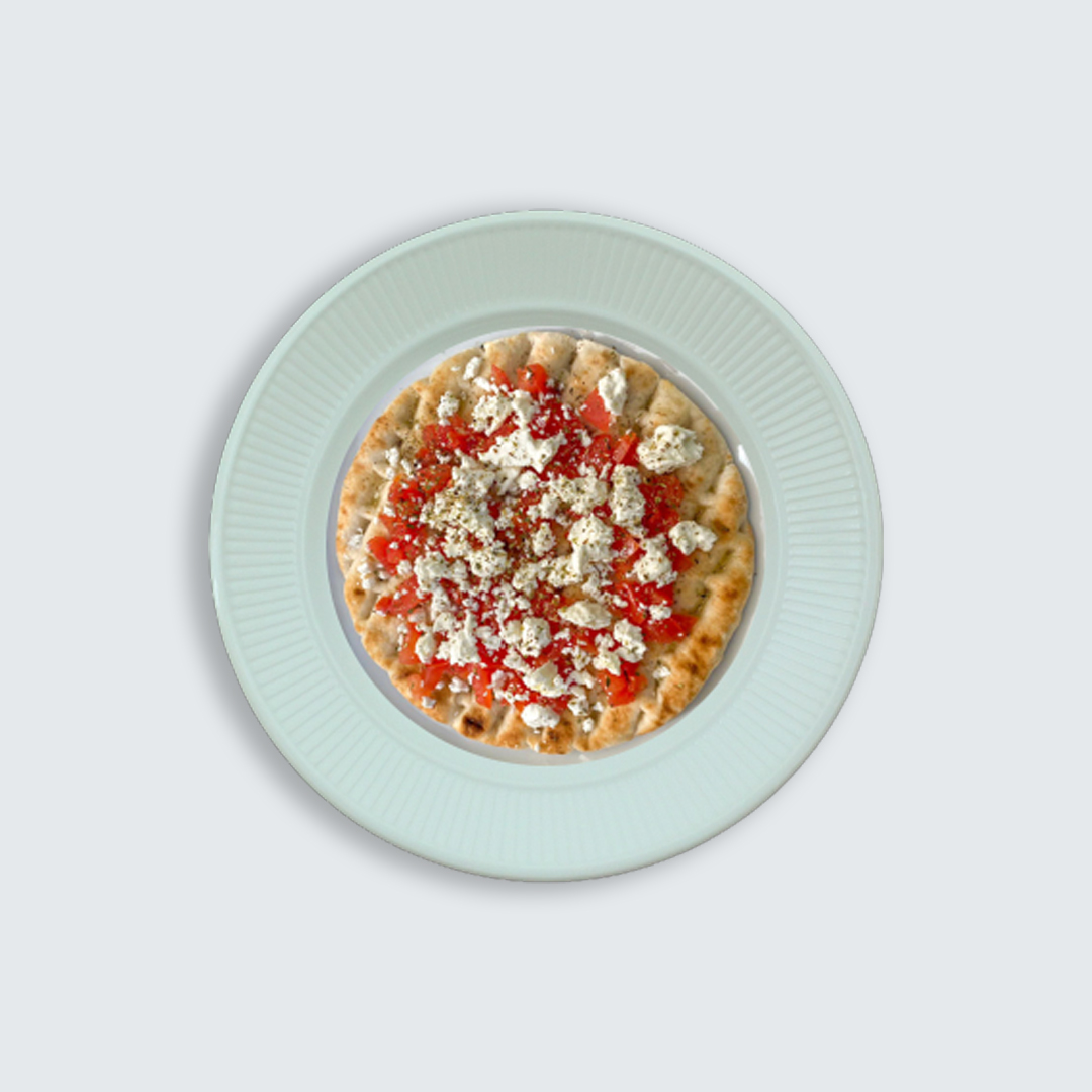 mit frische Tomaten und geriebene Feta-Käse(G)