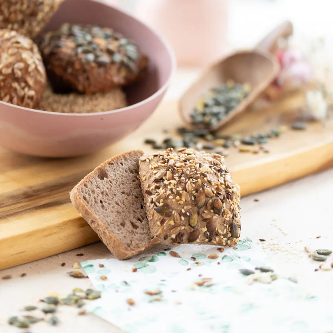Unser Kundenliebling – das Landbrötchen, aus Buchweizenmehl und Tapiokastärke hergestellt, begeistert durch seine feine Würze und samtige Textur, die dem optimalen Anteil an Sauerteig zu verdanken sind. Geschmacklich erinnert es an ein klassisches Roggenweck, ist unglaublich saftig und bleibt lange frisch. Für alle Brotliebhaber, die sich glutenfrei ernähren müssen oder wollen, sind diese Brötchen eine wahre Offenbarung. Dank der langen Teigführung und dem minimalen Einsatz von Hefe wird eine perfekte Krume und hervorragende Bekömmlichkeit erzielt. Ob mit Honig, würzigem Obazda oder kräftigem Schinken – dieses Brötchen passt zu jeder Gelegenheit und lässt keine Wünsche offen.