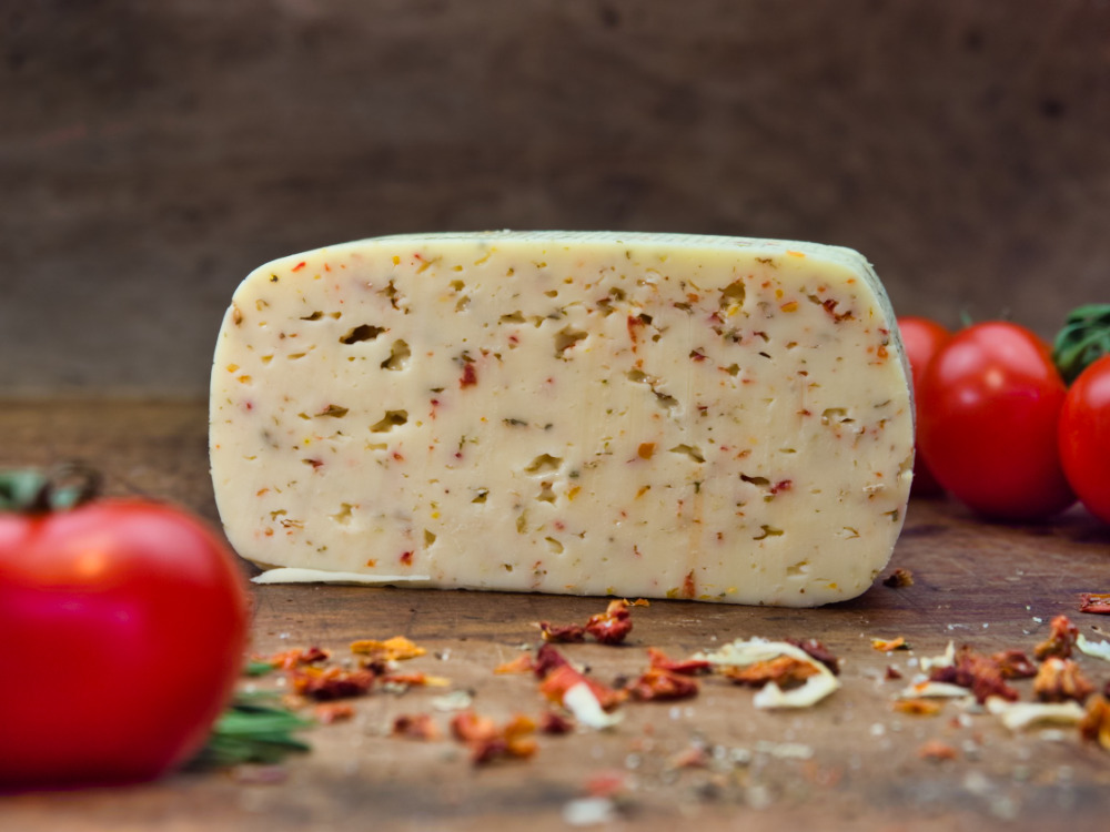 aus pasteurisierter KUHMILCH,Kochsalz, Tomate (1,2%), Oregano (0,2%), Majoran ( 0,2%), Käsereikulturen, mikrobieller Labaustauschstoff, Calciumchlorid