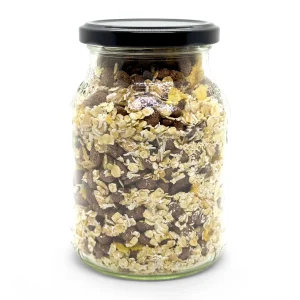 Dein Müsli wird, so wie fast alles bei uns, im praktischen Pfandglas geliefert. Das sind etwas über 300g, also ca. 3 Portionen. Perfekt zum Ausprobieren also! Möchtest du mehr, dann kannst du dir gerne eine unserer Großpackungen bestellen. Du erhältst dein Müsli dann in Papier verpackt, das du dann am besten kühl und trocken lagerst, damit alles schön frisch und gut geschützt bleibt.