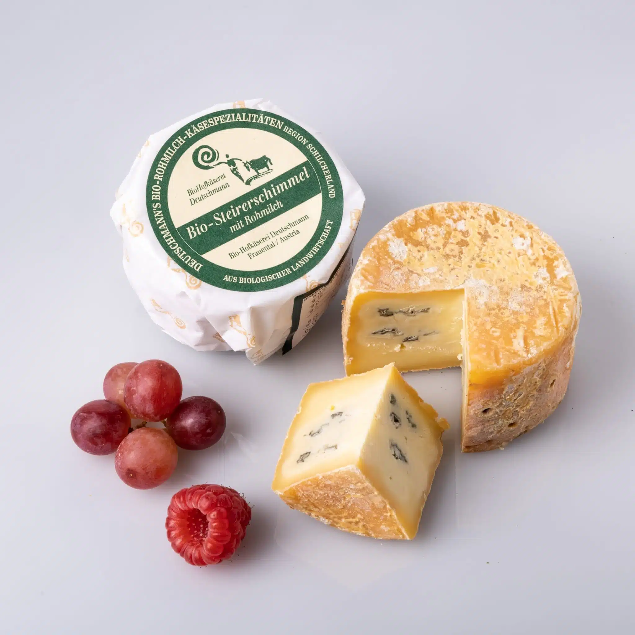 - Weichkäse mit Blauschimmel im Inneren und Rotkultur als Naturrinde aus Bio-Rohmilch