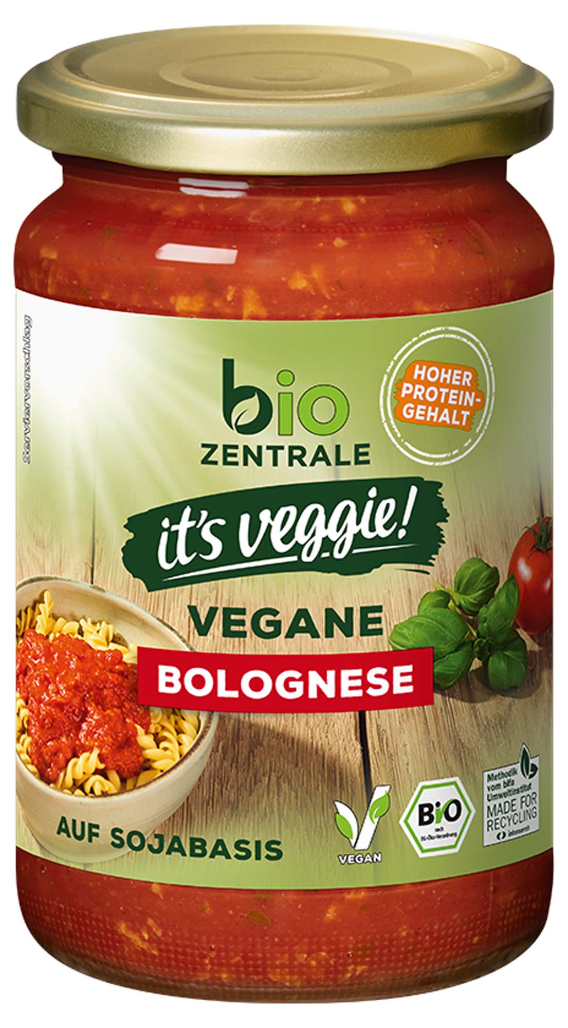 Unsere biozentrale Vegane Bolognese hat einen hohen Proteingehalt und ist zudem laktosefrei. Sie wird mit sonnengereiften Tomaten und Soja als Fleischalternative hergestellt. Ihr vollmundig fruchtiger Geschmack mit leichter Kräuternote macht unsere vegane Bolognese so einzigartig lecker. Perfekt für die schnelle Zubereitung einer leckeren Pasta Bolognese vegan.