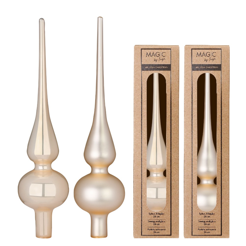 Der perfekte Abschluss am Weihnachtsbaum ist nach wie vor noch die Spitze. Egal ob Du Deinen Weihnachtsbaum bunt, elegant oder traditionell schmücken möchtest – wir haben die richtige Farbe für Dich. Jetzt musst Du Dich nur noch entscheiden, ob Deine Christbaumspitze matt oder glänzend sein darf.Glänzend