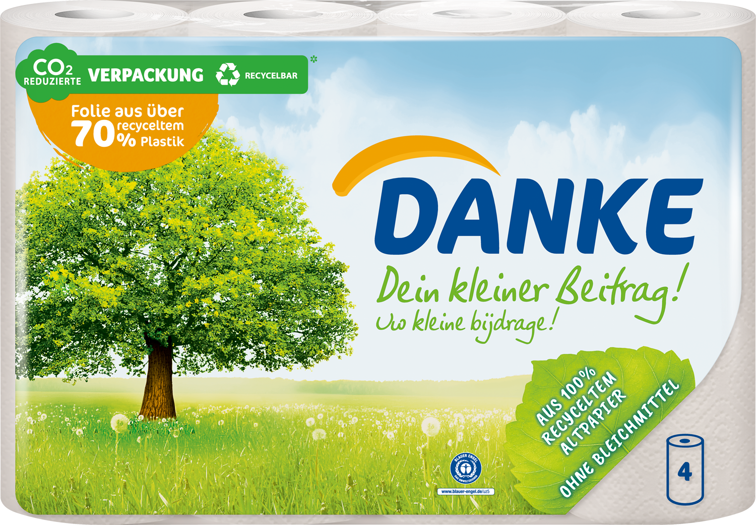 Aus recyceltem Altpapier und Folie aus über 50% recyceltem Plastik