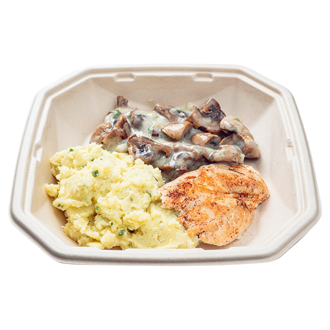 mit frischen Cremechampignons und Kräuterkartoffelpüree