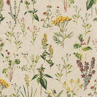 Die „Herbal Meadow“ Servietten zaubern mit ihrem natürlichen Kräuter- und Blumendesign eine Sommerwiesen-Atmosphäre auf Ihren Tisch. Umweltfreundlich, zweilagig und vielseitig für jeden Anlass geeignet.