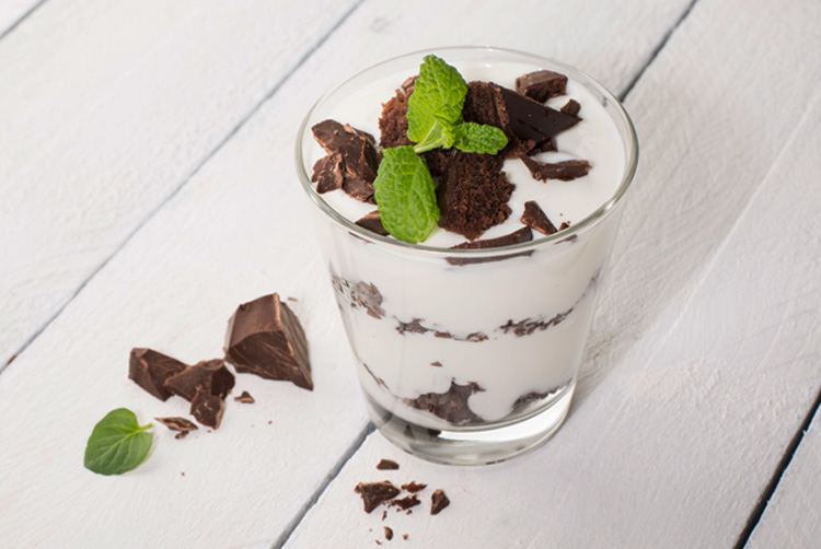 Naturjoghurt mit saftigen Browniestücken.