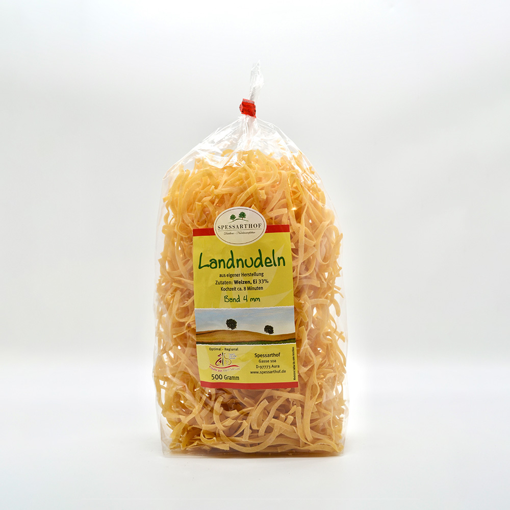Unsere Nudeln entstehen in unserer Manufaktur noch in echter Handarbeit. Hierbei verwenden wir frische Eier aus der Region und ausgezeichneten Hartweizen- oder Dinkelgrieß. In unserem Trockenschrank dürfen unsere Nudeln dann für fast zwei Tage trocknen, bevor sie von uns in Tüten verpackt werden.