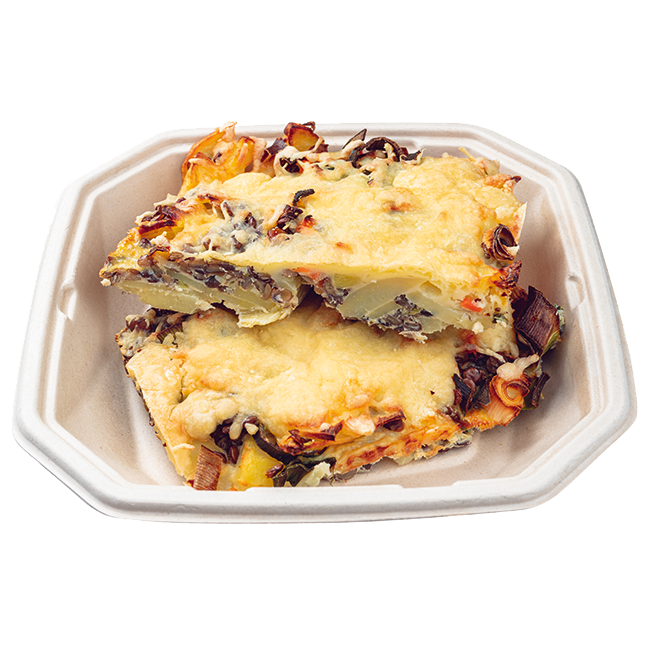mit frischem Lauch, Karotten und Goudakäse überbacken