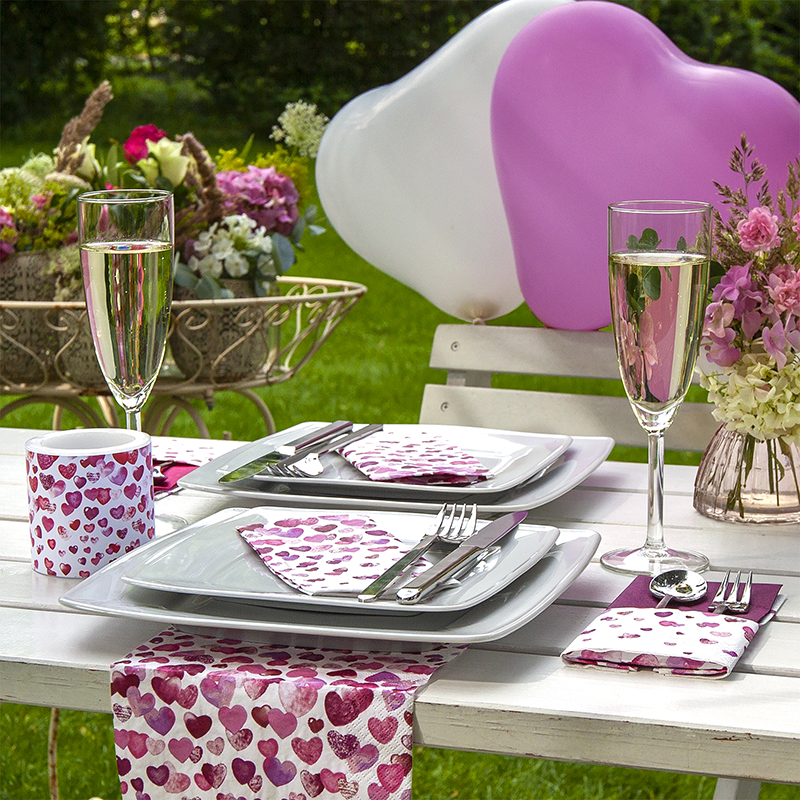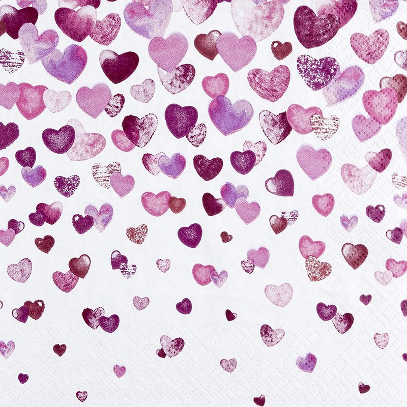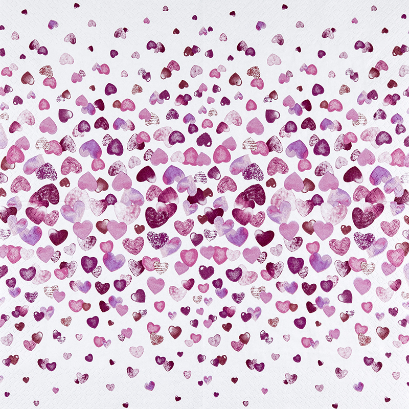 Elegant und vielseitig: Die Lovely Hearts Servietten sind ideal für festliche Tischdekorationen mit ihrem charmanten Herzdesign in Fuchsia, Rosa und Violett.
