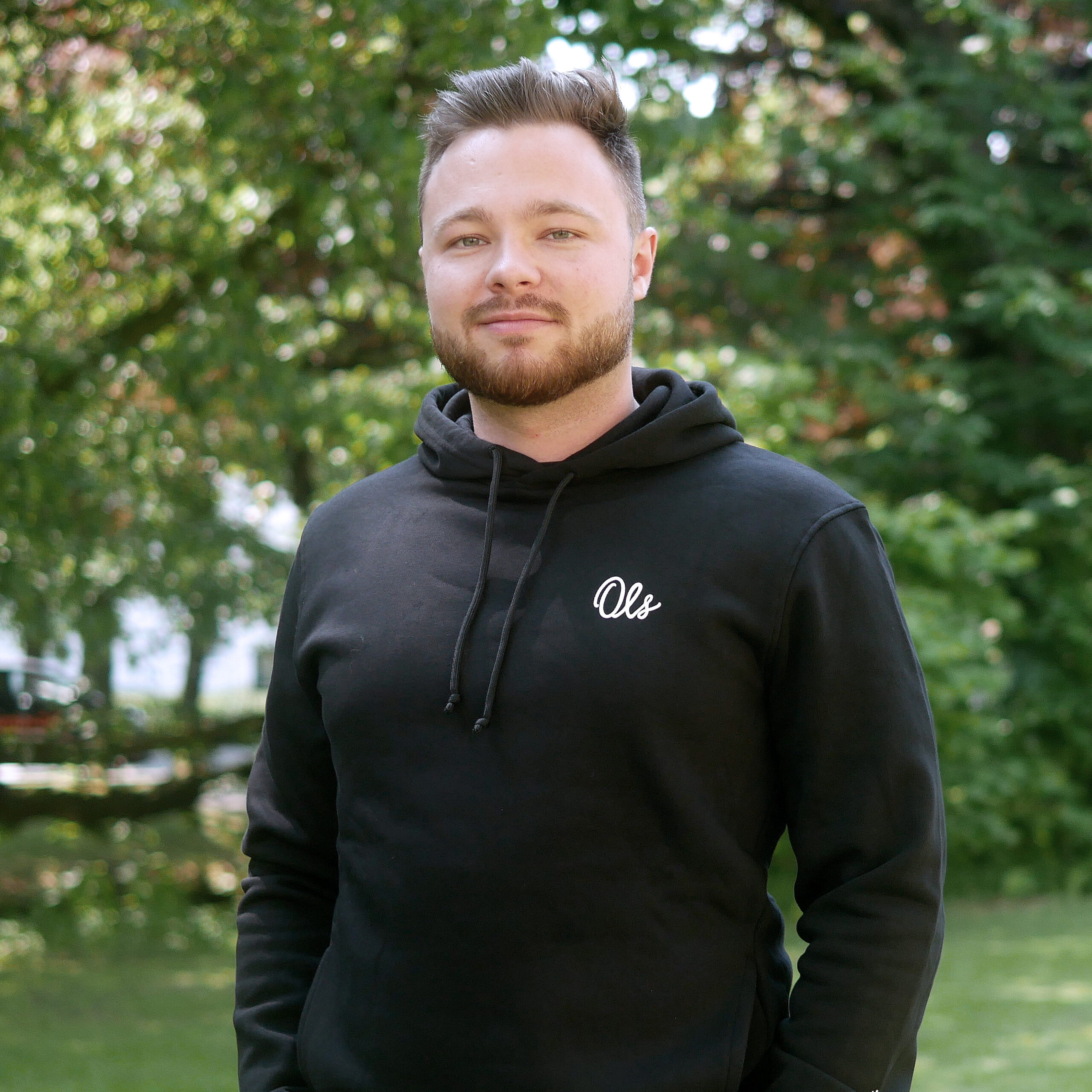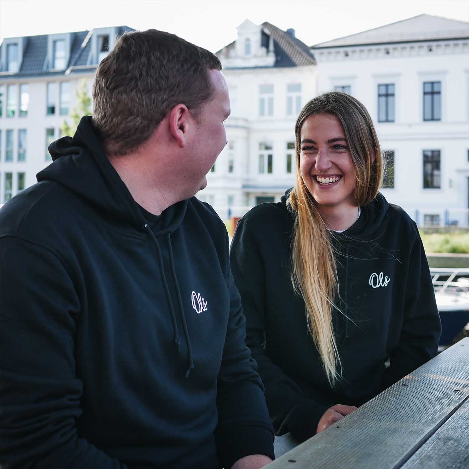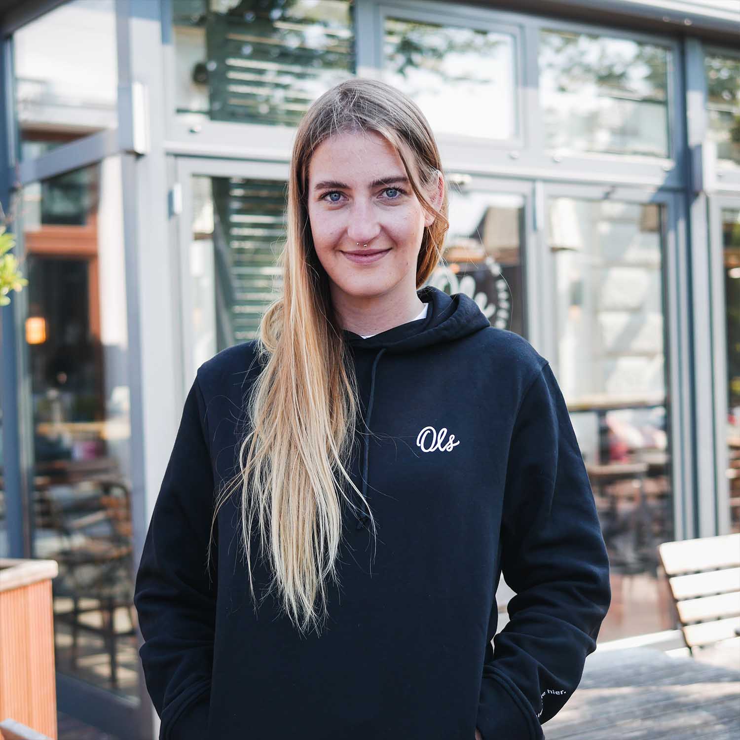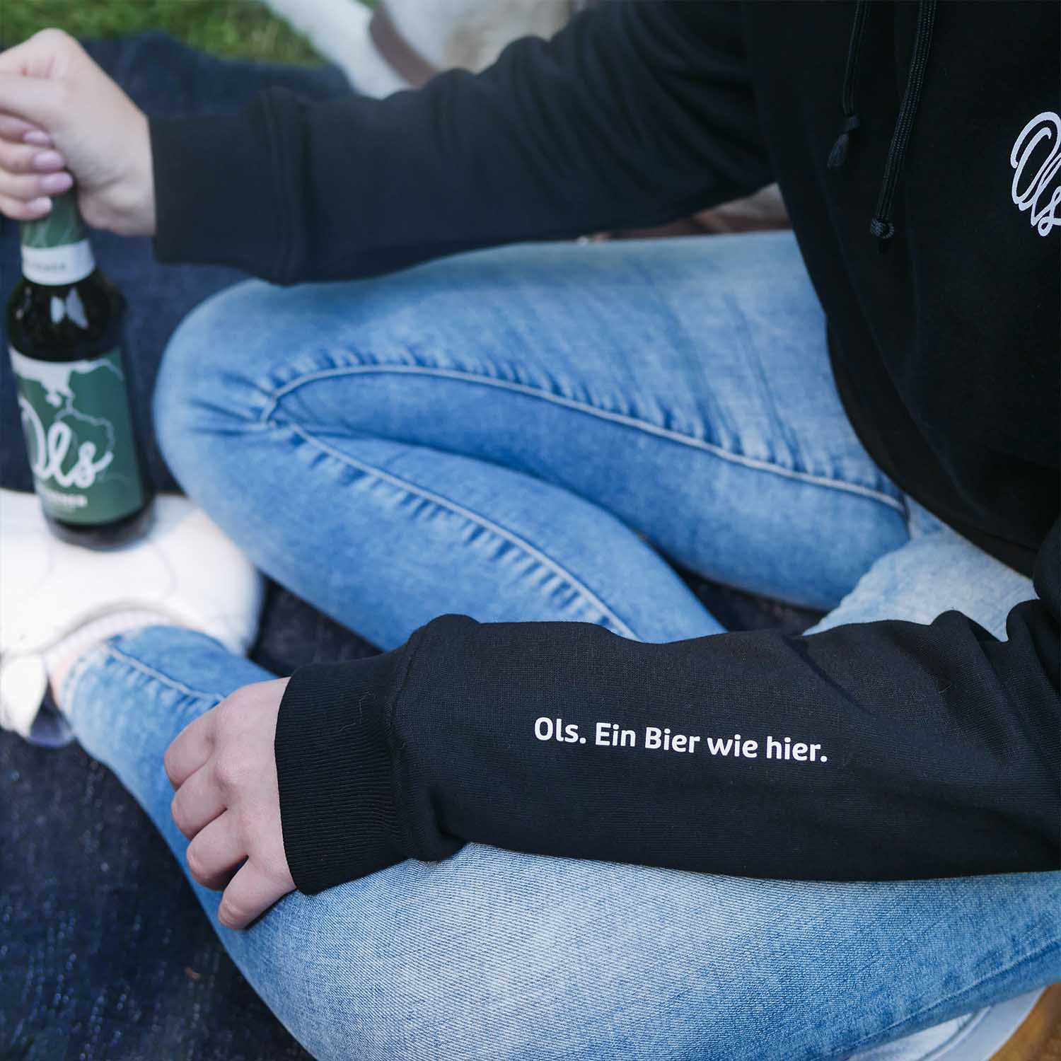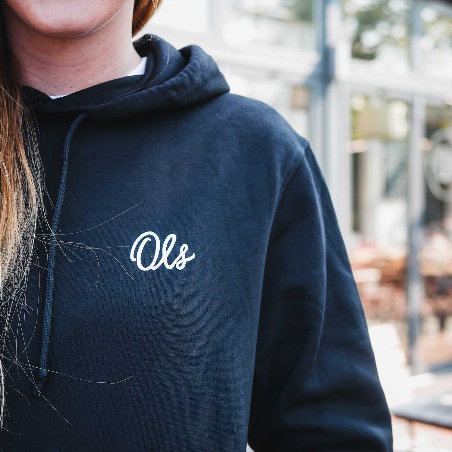 Schwarzer Ols Hoodie für Damen & Herren mit weißen Logo auf der Brust.