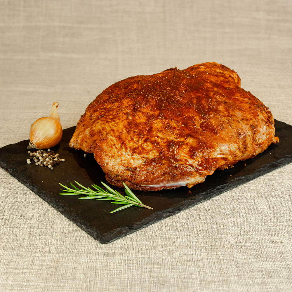 Bitte als Notiz (bei Abschluss der Bestellung im Warenkorb) angeben ob das Fleisch gewürzt (mit einem Rub) oder ungewürzt sein soll.