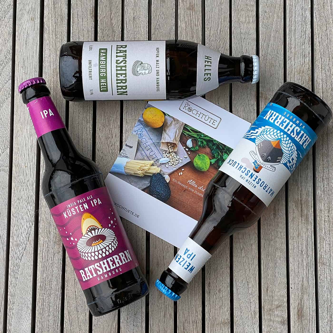 - Ratsherrn Helles: Auf besonderen Wunsch von Chris in unserem Probierpaket gelandet. Schließlich trinkt man im Allgäu – der Heimat von Chris – sehr gerne ein süffiges Helles. Alkoholgehalt: 5.1% vol.