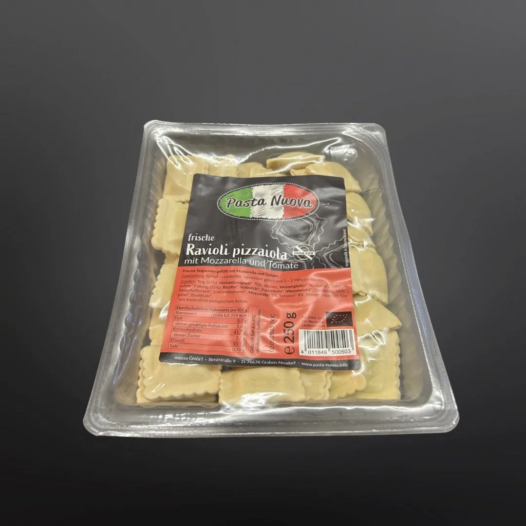 Produktbeschreibung: Frische Teigwaren gefüllt mit Mozzarella und Tomate