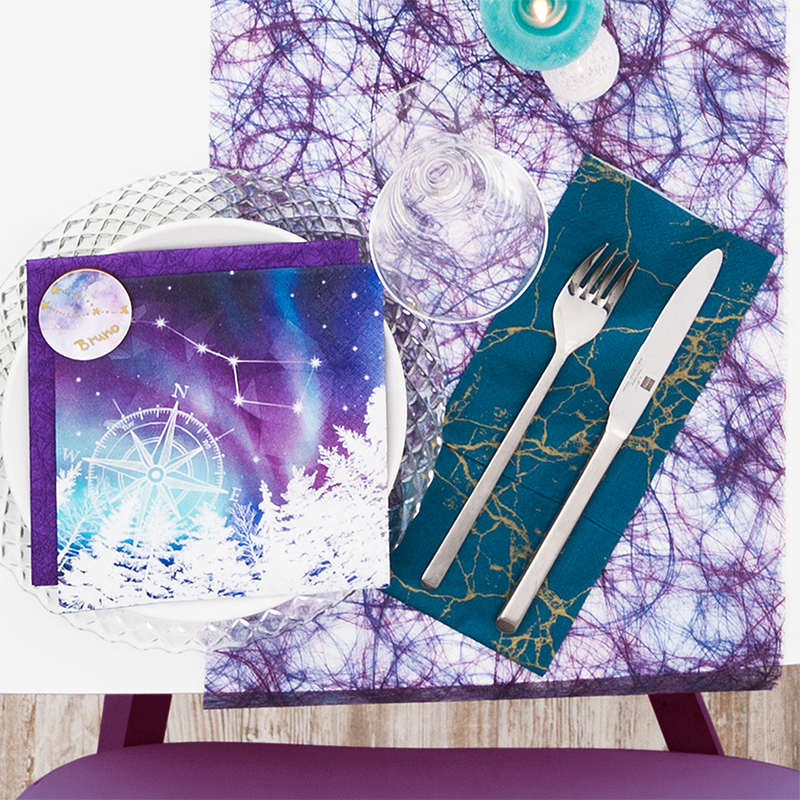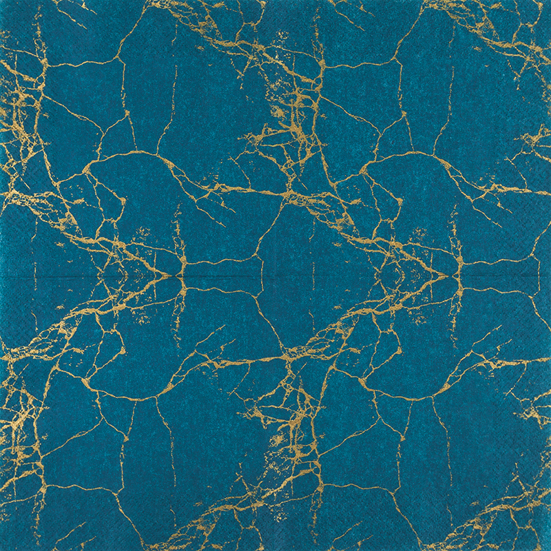 Entdecken Sie die luxuriösen ‚Royal Marble petrol‘-Servietten in Petrol und Gold, die Ihrer Tischdekoration Stil und Eleganz verleihen.