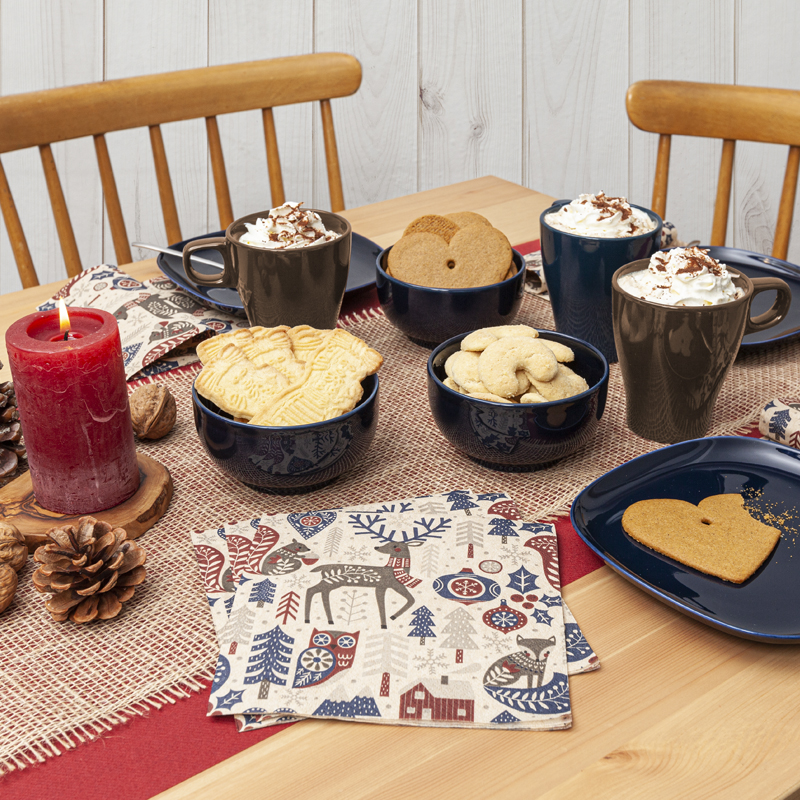 Elegante Scandi Pattern Servietten aus recyceltem Tissue, perfekt für stilvolle Tischdekorationen. Nachhaltig und ästhetisch mit skandinavischem Design.