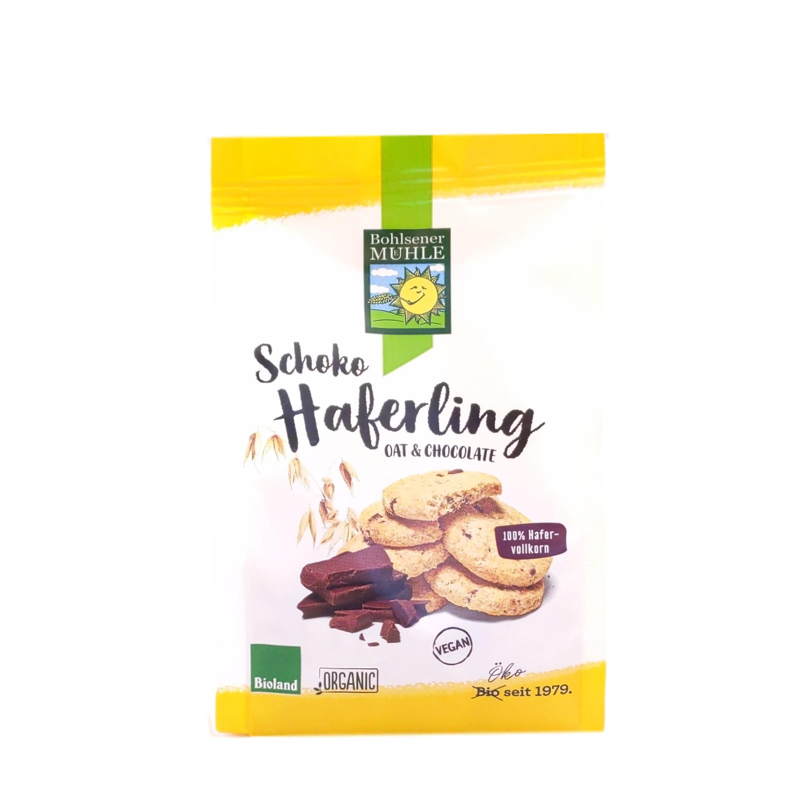 Knuspriges Hafergebäck mit Schokostückchen, für unseren Schoko-Haferling verwenden wir ausschließlich Hafervollkornmehl, zarte Haferflocken und feine Zartbitterschokolade. Purer Hafergenuss und leckerer Schokogeschmack ergänzen sich zu einem besonderen Gebäck. Für vegane Ernährung geeignet.