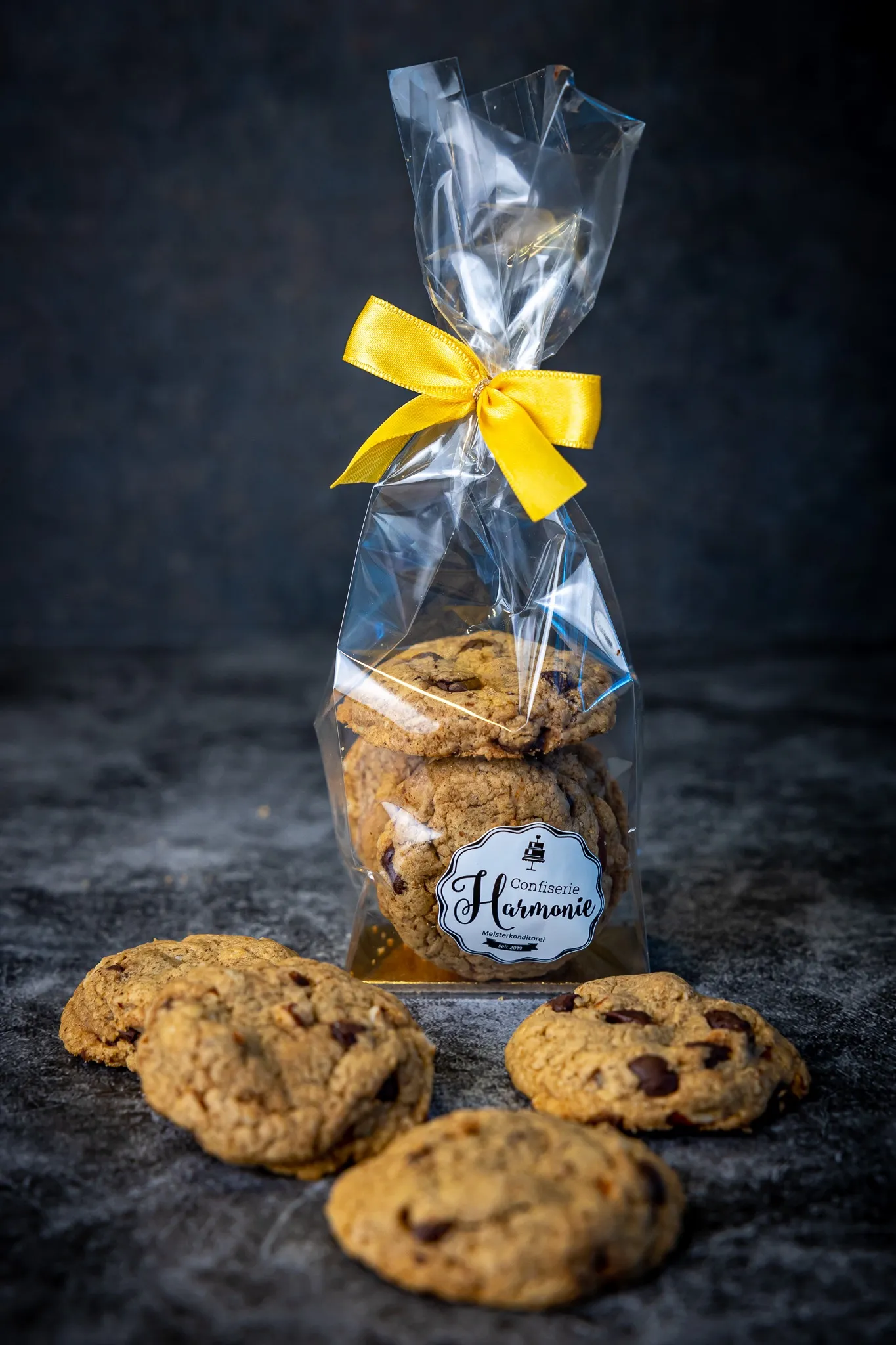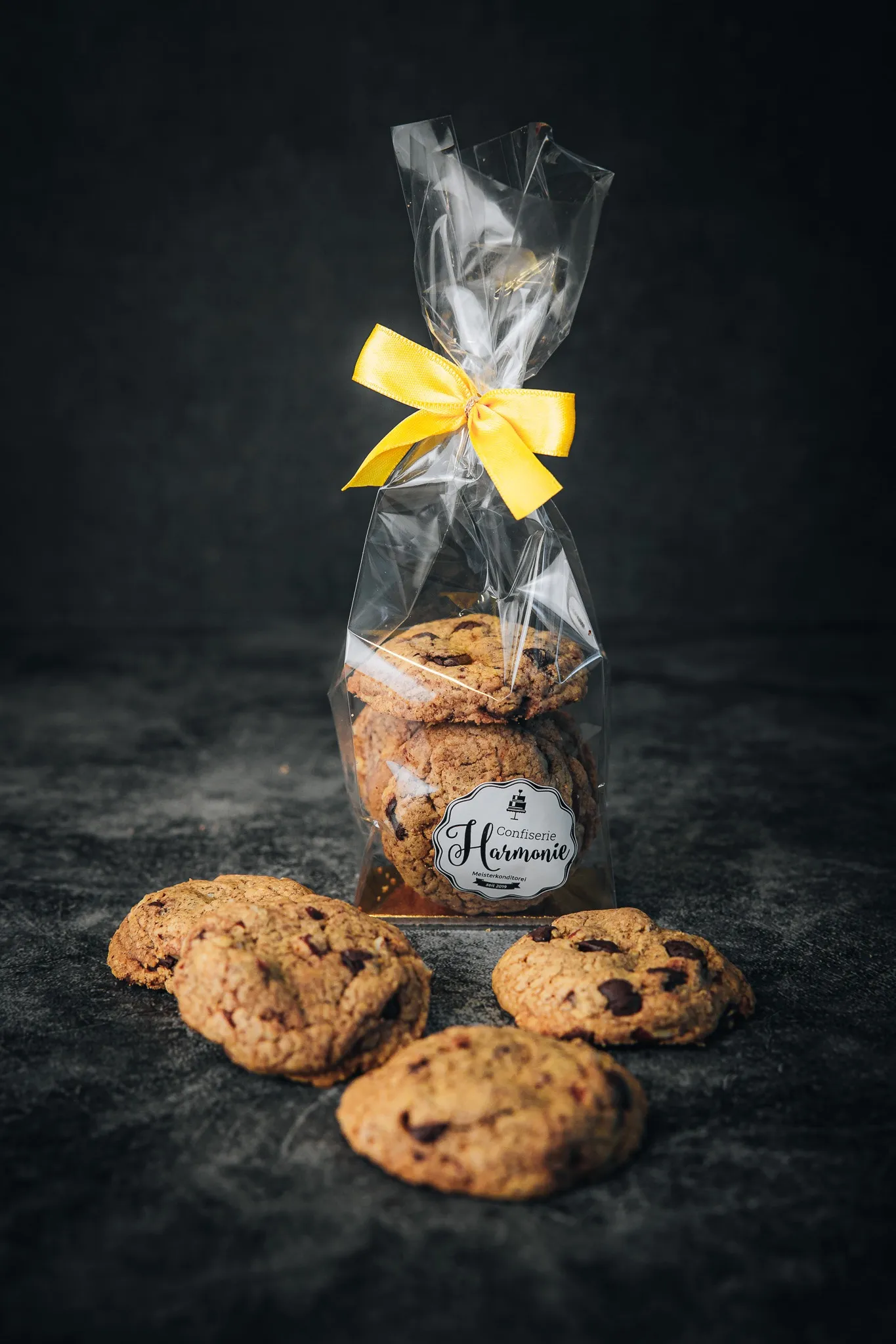 Plätzchen mit Zartbitterschokolade und ganzen Mandeln.